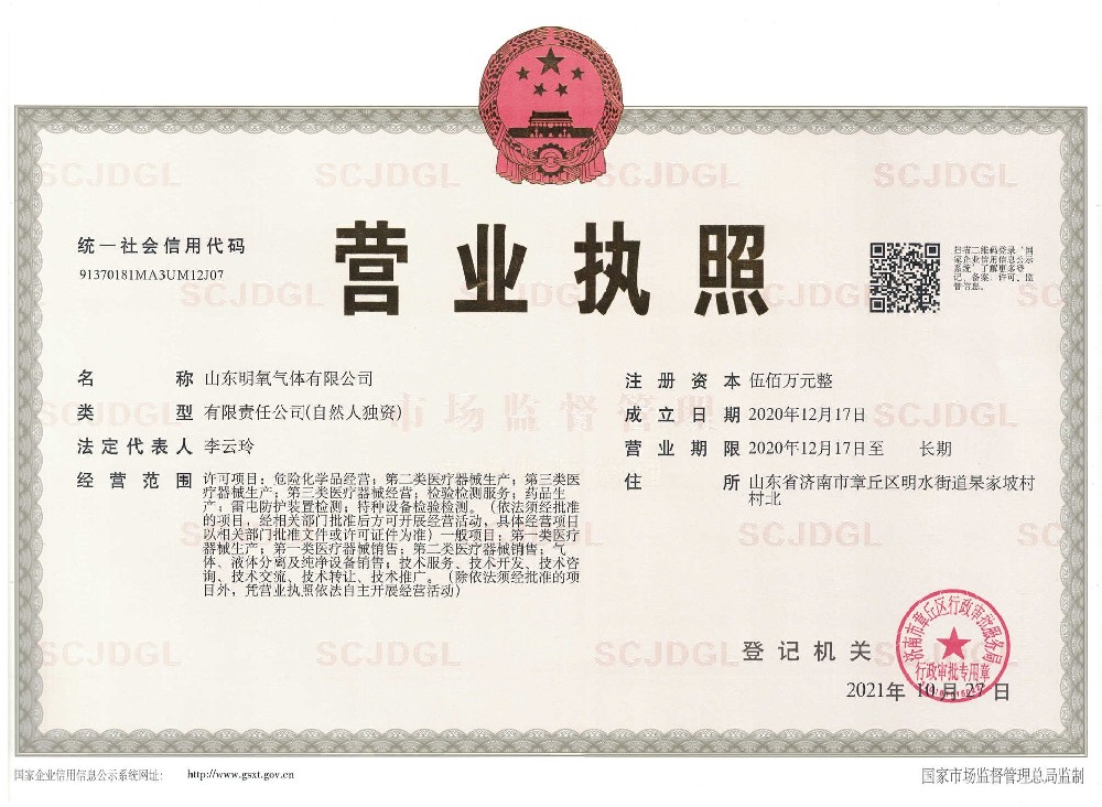 ??? 山東明氧氣體有限公司的前身為始建于1993年的章丘市明水氧氣廠,2020年12月企業(yè)由民營獨資轉型升級為山東明氧氣體有限公司,企業(yè)進入新的發(fā)展階段。公司位于山東省濟南市章丘區(qū)明水街道杲家坡村村北,占地面積4000平方米,注冊資金500萬元,固定資產(chǎn)投資3000萬元,主要經(jīng)營項目為醫(yī)用氧氣、工業(yè)氧氣、氮氣、高純氮氣、氬氣、高純氬氣、高純氦氣、二氧化碳、混合氣體等各種工業(yè)氣體、高純氣體、混合氣體的充裝銷售、各類氣瓶的銷售、安全閥校驗、鋼質無縫氣瓶的檢驗等。